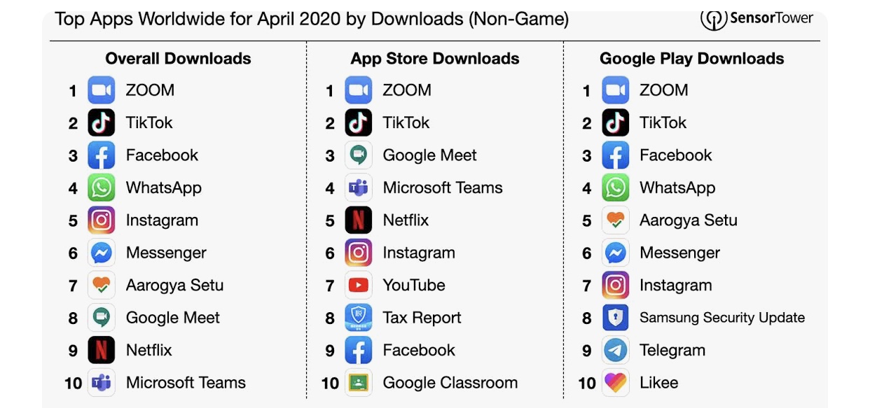 ان عرصي دوران حیرت انگیز واڌ ٿي آھي سوشل میٽنگ جي ویڊیو ڪانفرنسنگ ایپ “زوم” ۾ جنھن جي اپریل ۾ ڊائونلوڊنگ تیرھن ڪروڙ کان وڌي وئي ۔ اھو تمام حیرت انگیز اضافو آھي جنھن سان ایپ جي ریٽنگ ۽ مقبولیت ۾ وڏو اضافو ٿیو ۔ھيء ایپ وڊیو ڪانفرنسنگ طور مختلف پروفیشنل ادارن جي آن لائین میٽنگز ، آن لائین ڪلاسز ، وڊیو ڪانفرنس لیڪچرز لاء استعمال ڪئي وڃي ٿي جنھن ۾ ھڪ ئي وقت سٺ ماڻھو شرڪت ڪري سگھن ٿا ۔